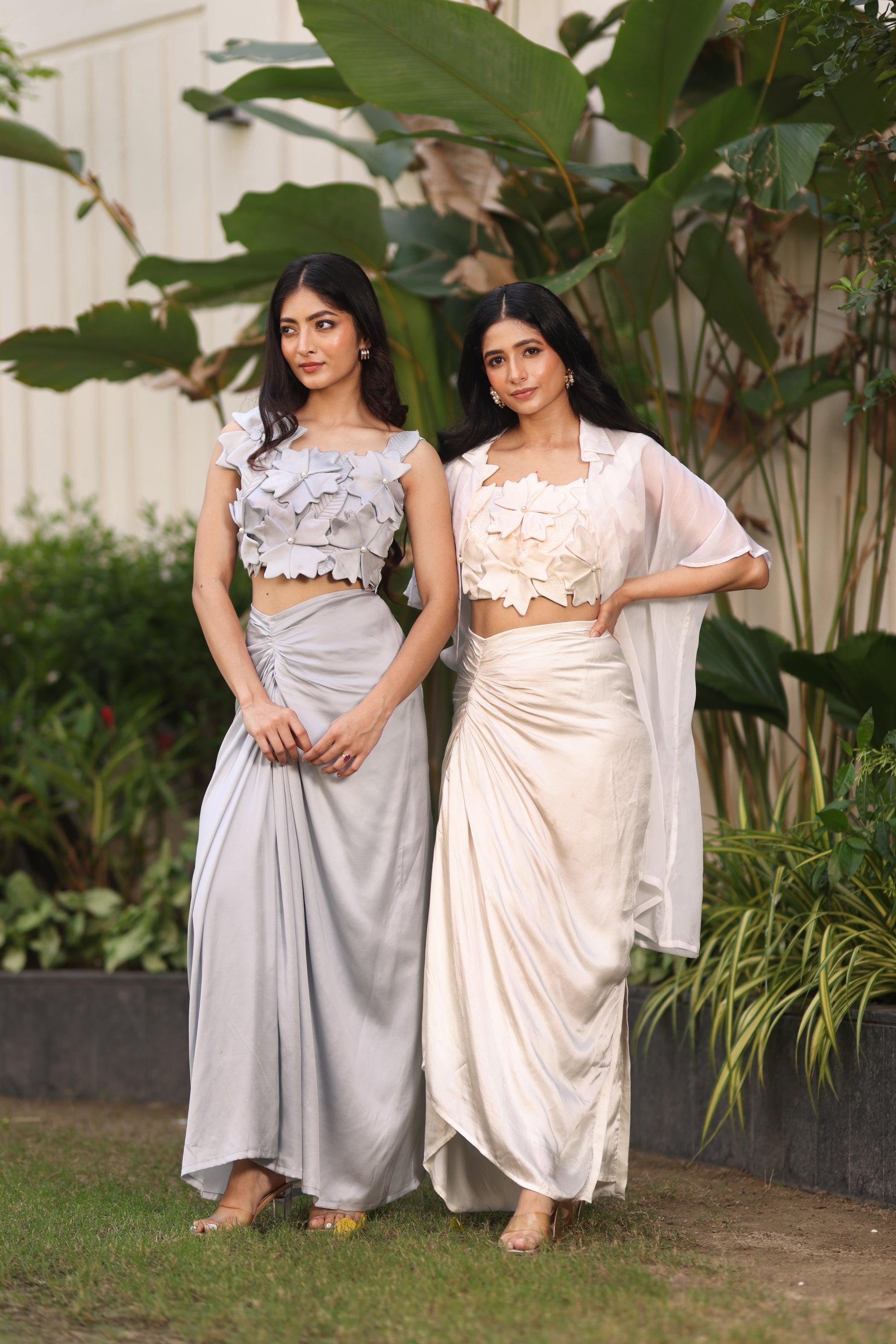 Flower bloom blouse+skirt and organza jacket