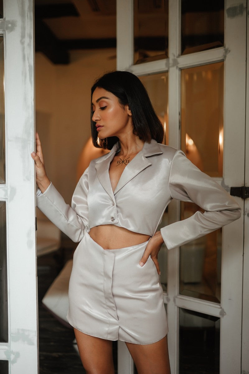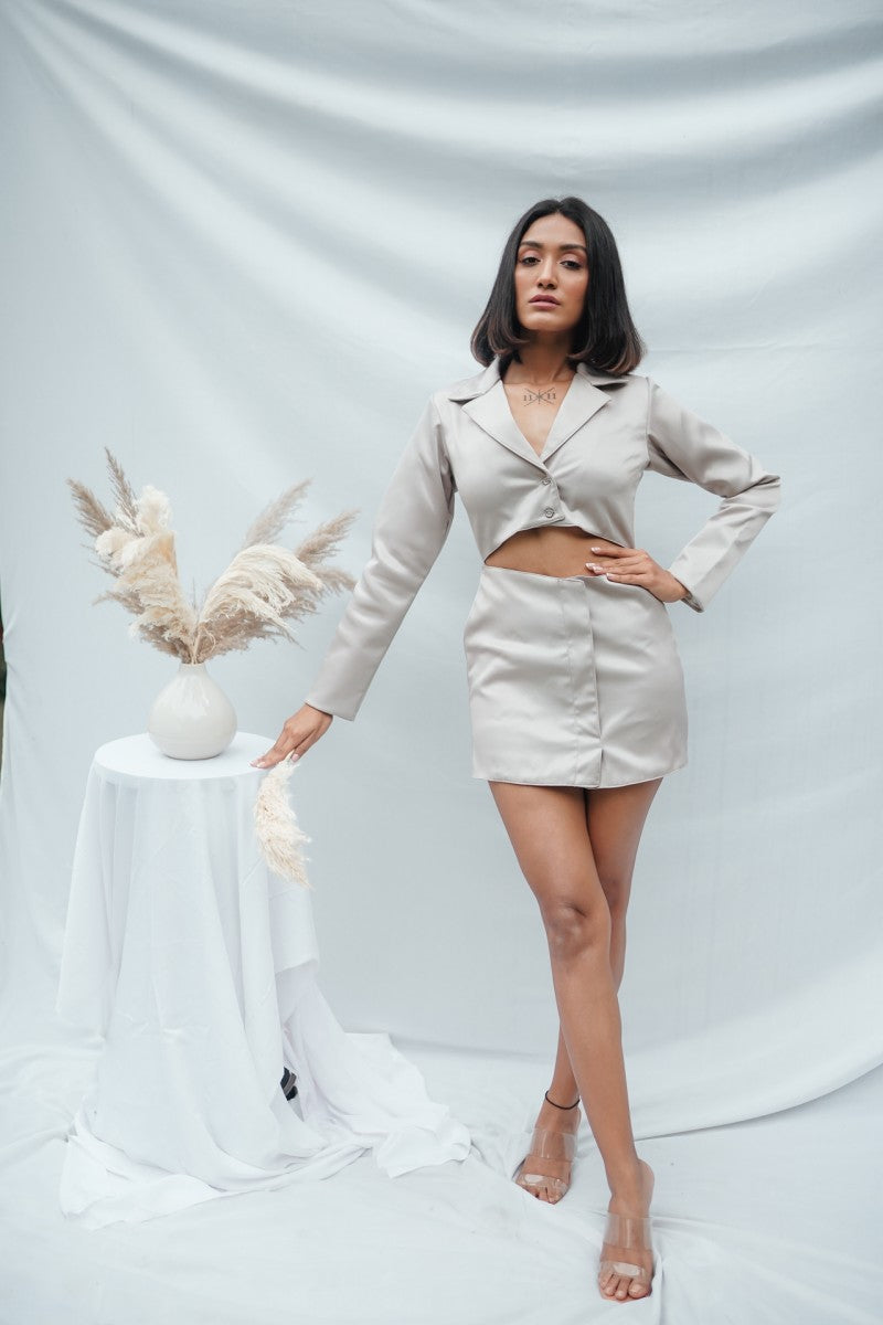 Grey Blazer Cut out Dress